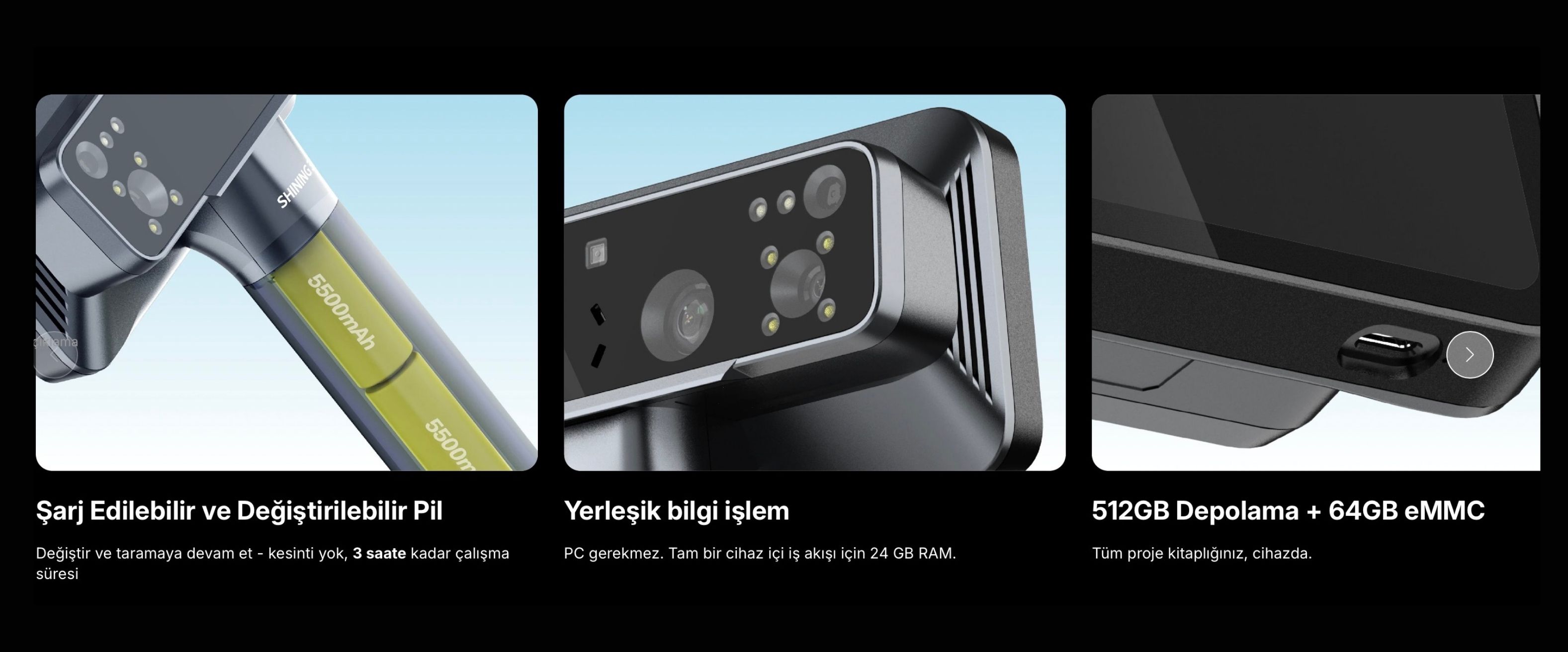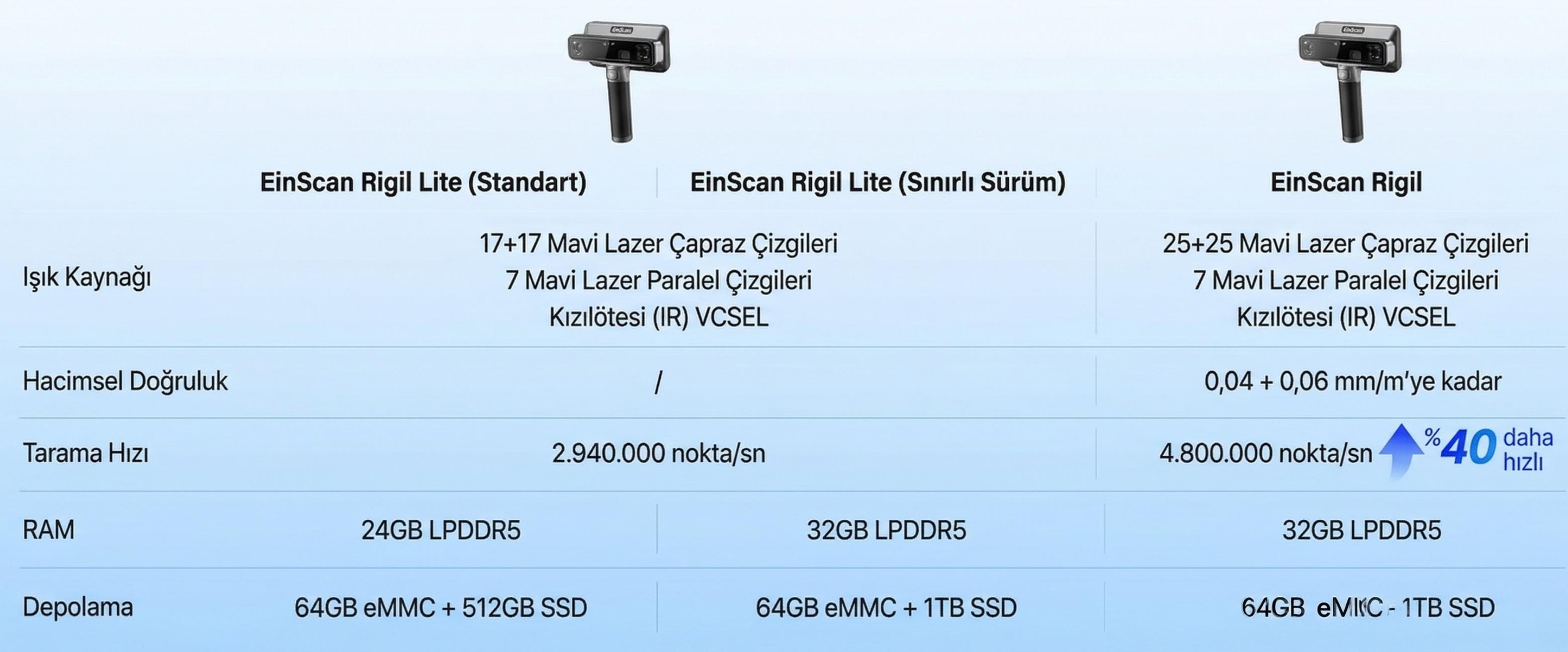 | Hacimsel Doğruluk | Lazer HD Modu: 0,04 + 0,06 mm/m'ye kadar IR Hızlı Modu: 0,1 + 0,3 mm/m'ye kadar |