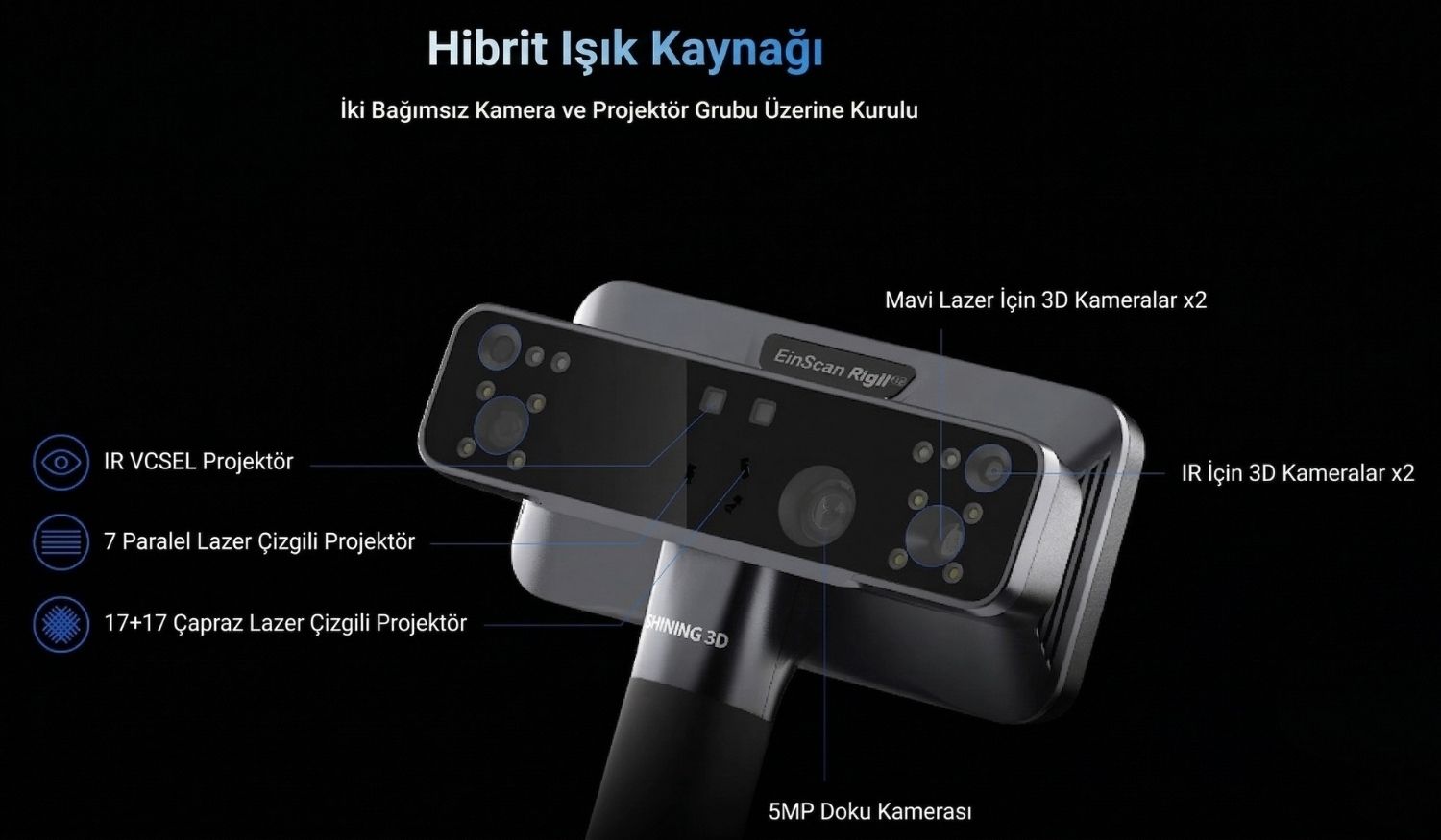 Orta ila büyük nesnelerde geniş kapsama alanı için IR taramasını kullanın. Ayrıca göz güvenli portre taramasını ve güvenilir dış mekan çalışmasını da destekler. Gelişmiş Hibrit İzleme, farklı işlerde istikrarlı izleme için Özellik, İşaretleyici, Doku ve Küresel İşaretleyici Hizalama'yı birleştirir.